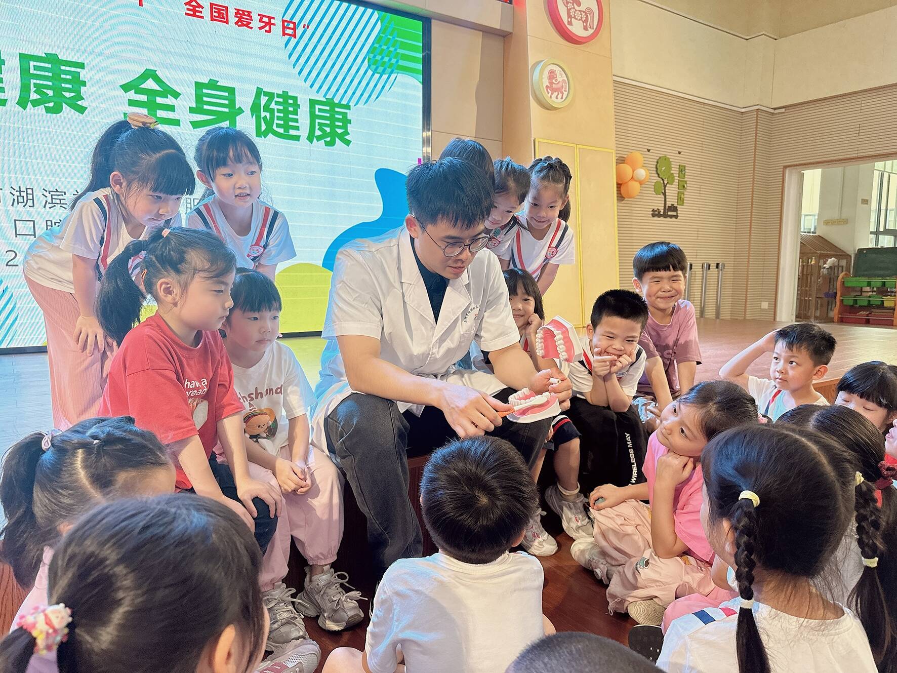 9月19日,湖滨社区卫生服务中心组织牙科医务人员走进湖滨中心幼儿园,为大班段全体师生开展“全国爱牙日”主题宣讲活动,通过趣味互动,用孩子们听得懂、喜欢玩的方式,播撒口腔健康的种子。