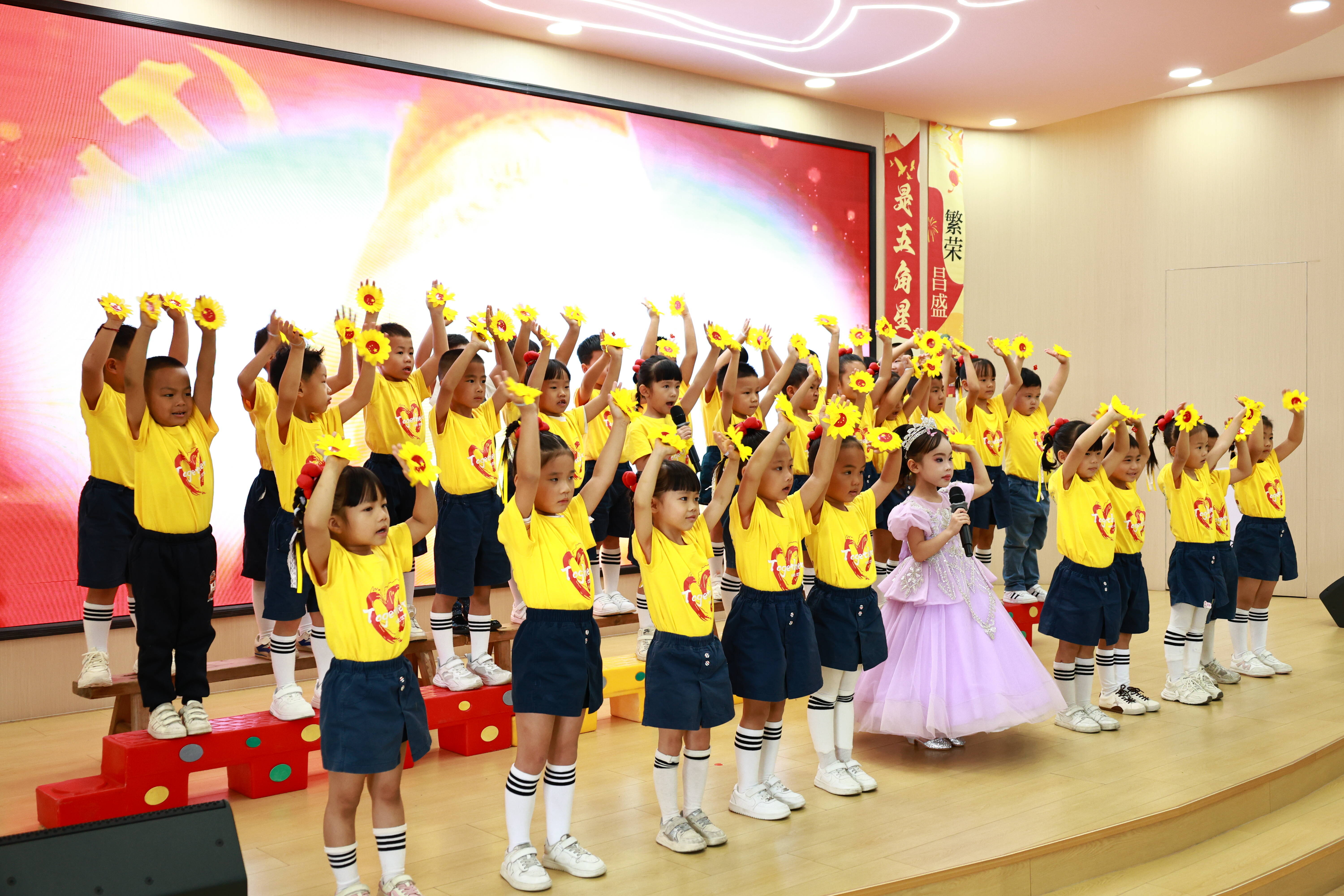 活动伊始,师生们在幼儿园门口热情迎接老人,并为每位老人佩戴上一朵象征吉祥如意的小红花,传递浓浓敬老情。汇演中,孩子们精神饱满,以班级为单位依次登台,用稚嫩而真挚的童声合唱了《党是太阳我是花》《我是勇敢小兵兵》《祖国是我家》《红船新一代》等10首充满爱国情怀的歌曲,表达对祖国的热爱与祝福。老人们看得入神,不时响起热烈掌声。