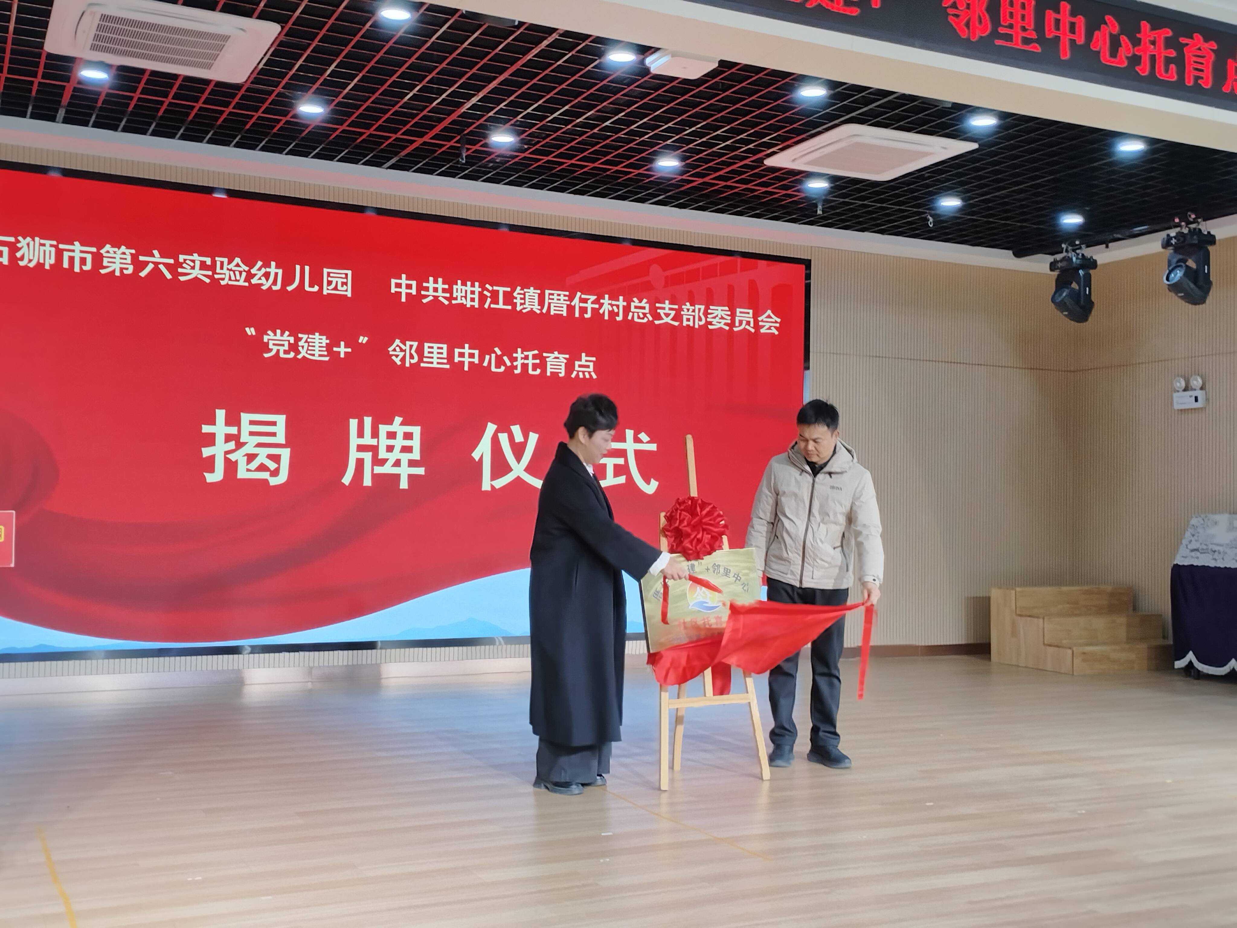 1月23日下午,在市教育局、蚶江镇、市妇幼保健院有关负责人和家长代表的见证下,蚶江镇厝仔村与石狮市第六实验幼儿园“党建+”邻里中心托育点共建协议签约暨揭牌仪式在市第六实验幼儿园举行。双方表示,将以此次共建为契机,深化党建引领基层治理,切实满足辖区0~3岁婴幼儿照护需求。