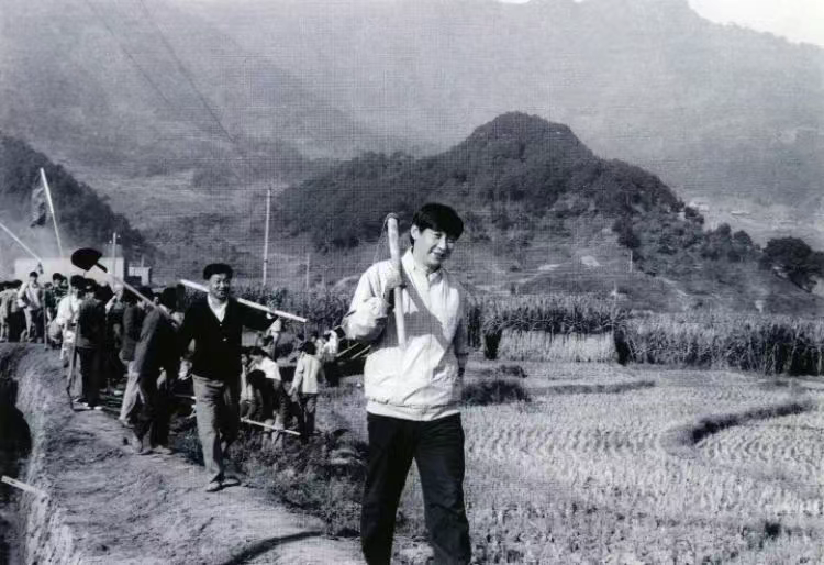 1989年,时任宁德地委书记习近平带领地直机关干部在宁德市参加义务劳动。(图源:《摆脱贫困》)