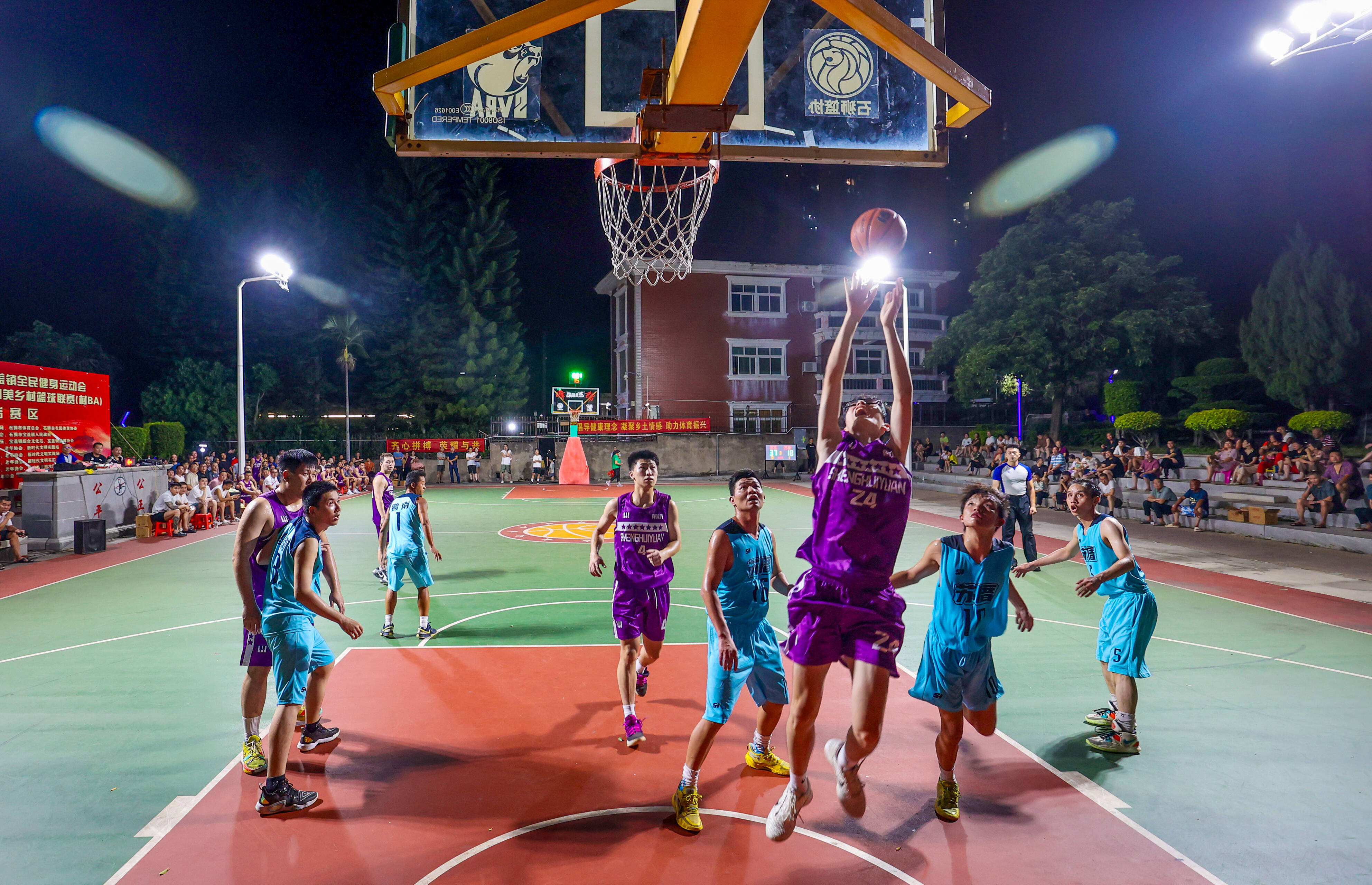 8月11日晚,2025年石狮市宝盖镇全民健身运动会暨第十届和美乡村篮球联赛“村BA”鸣锣开赛,全镇20个村(社区)组队参赛。