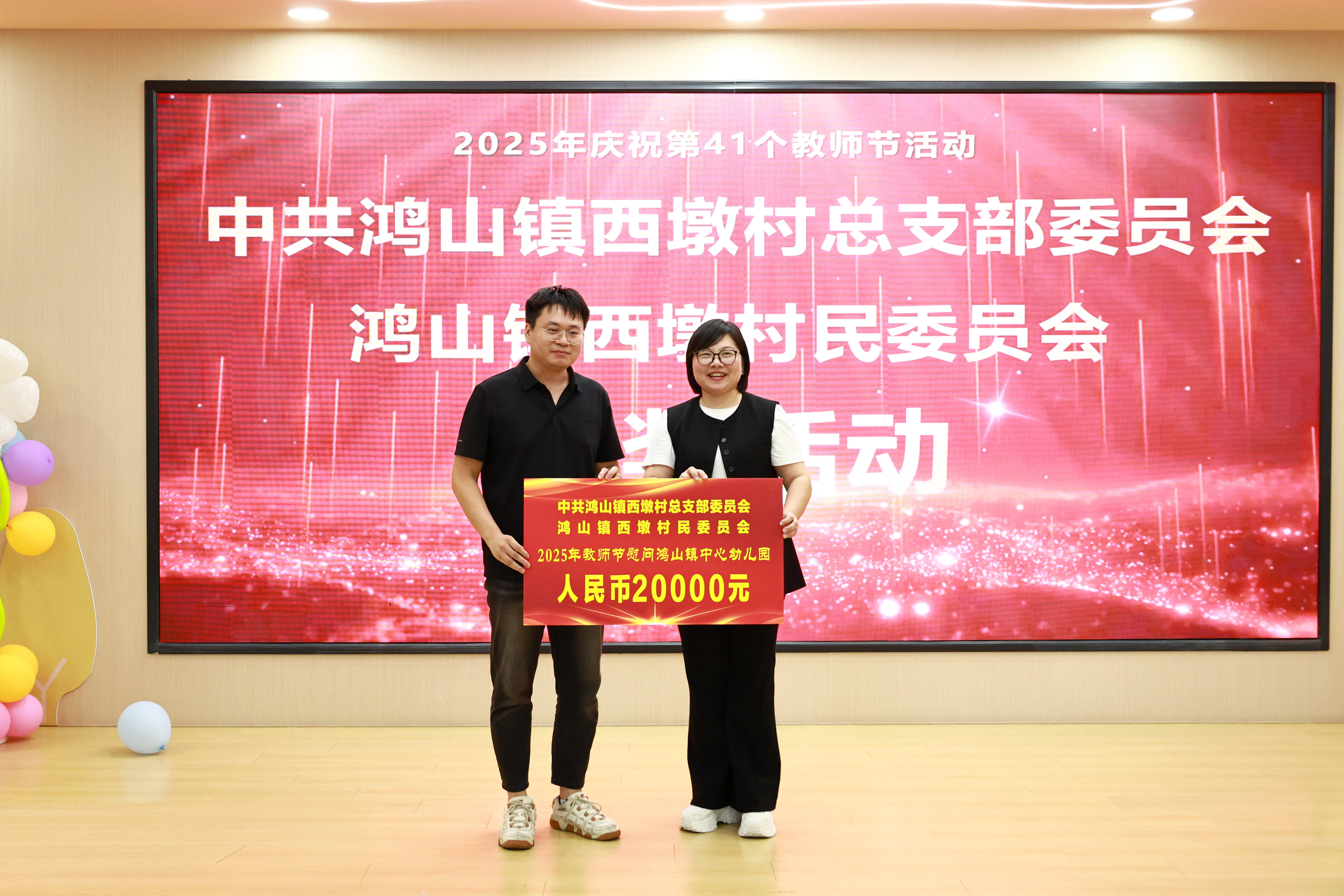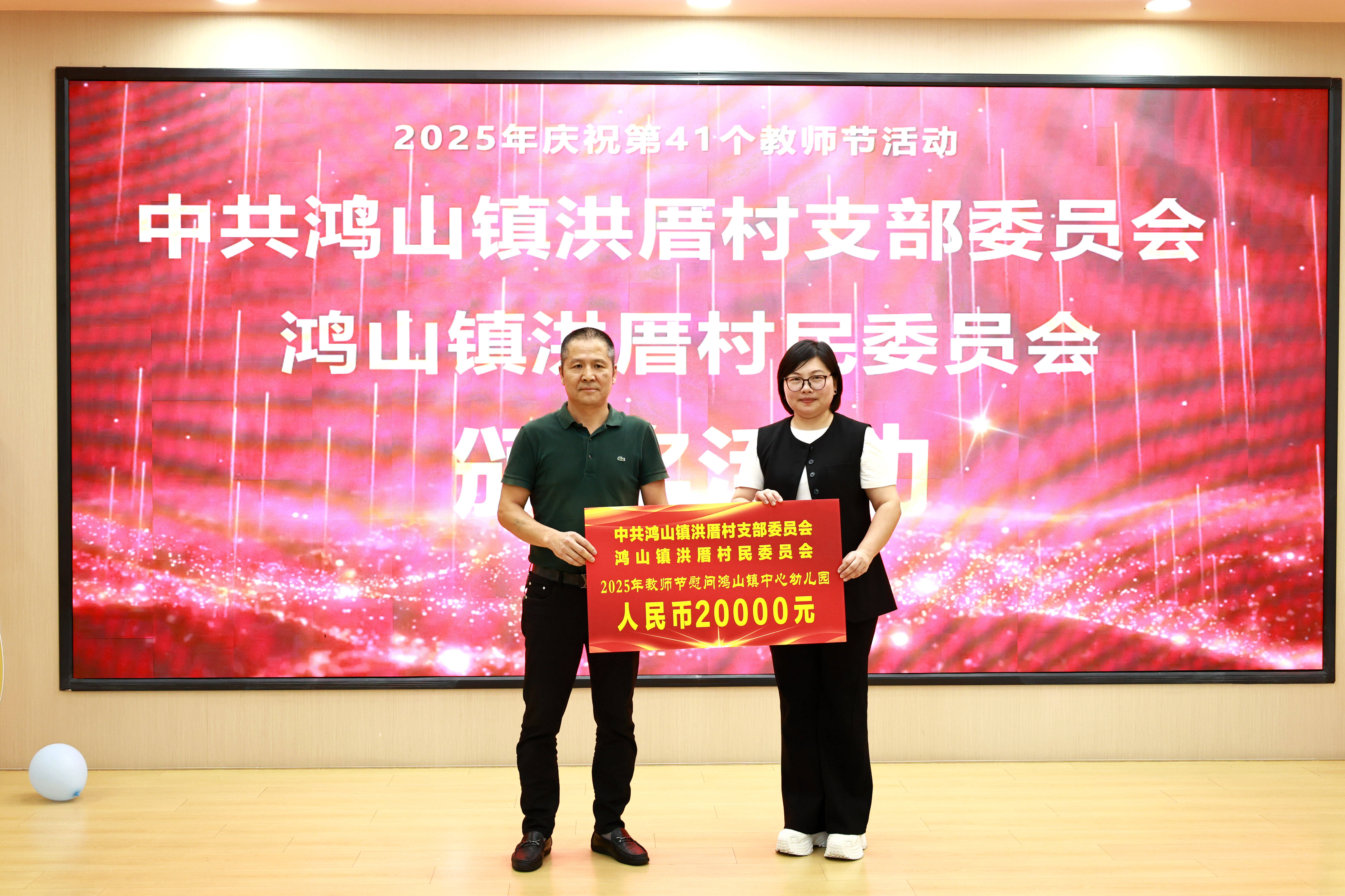 9月10日下午,鸿山镇中心幼儿园举行2025年教师节奖教活动,为表现突出的一批职工给予了表彰奖励,并收到来自镇村和社会各界共计9.2万元捐资助力。