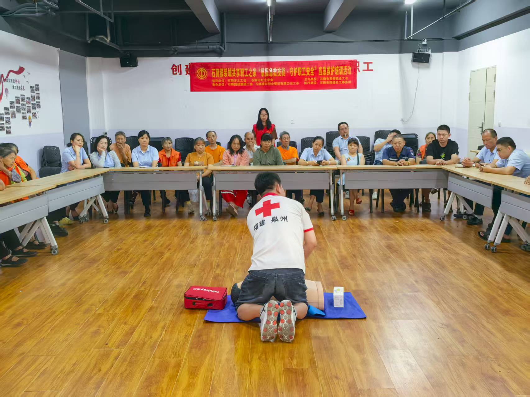 9 月11 日下午,石狮市服装城共享职工之家举行“掌握急救技能・守护职工安全”应急救护培训活动,为商圈职工送上实用的“安全防护课”。