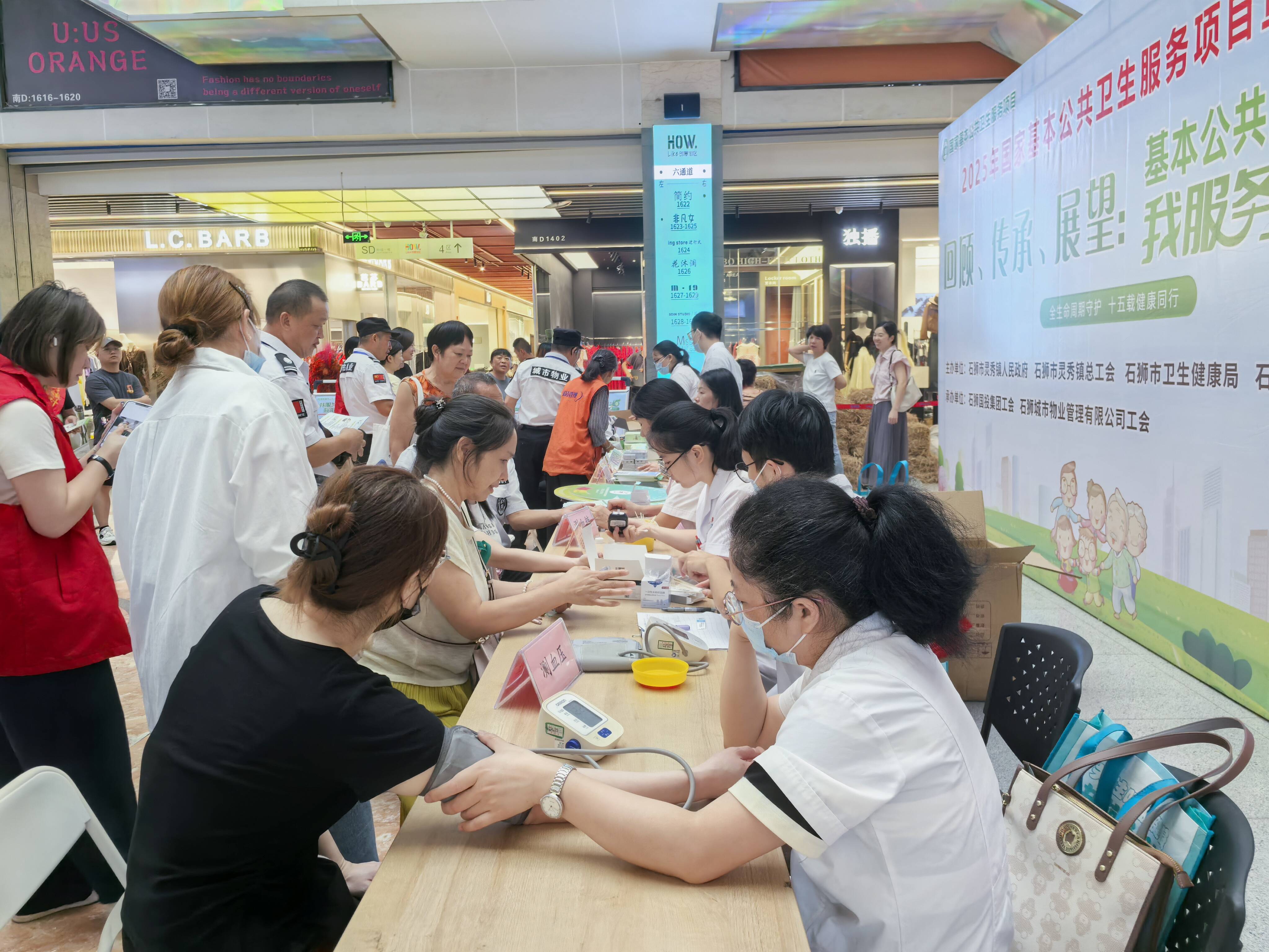 9月19日下午,石狮服装城共享职工之家联合灵秀社区卫生服务中心在服装城开展“金秋送健康”关爱职工义诊活动。