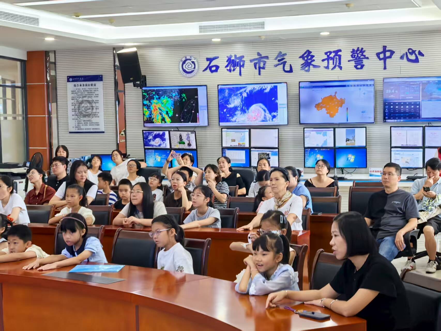 活动中,通过用闽南语朗诵传统天气童谣,孩子们在韵律中感受了祖辈们的气象智慧。随后,在气象员的带领下,大家还参观了气象观测设备,并体验了模拟天气预报播报。