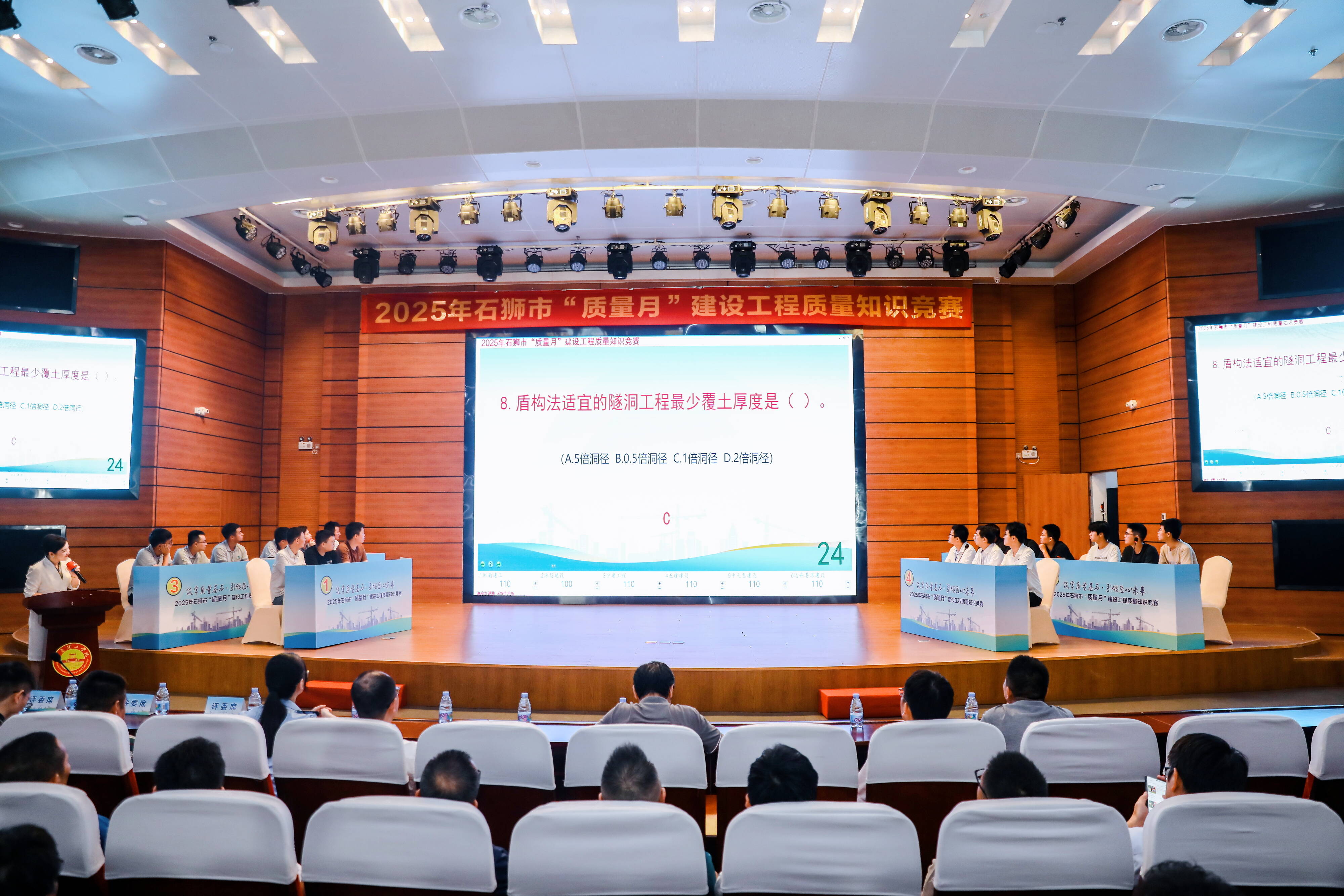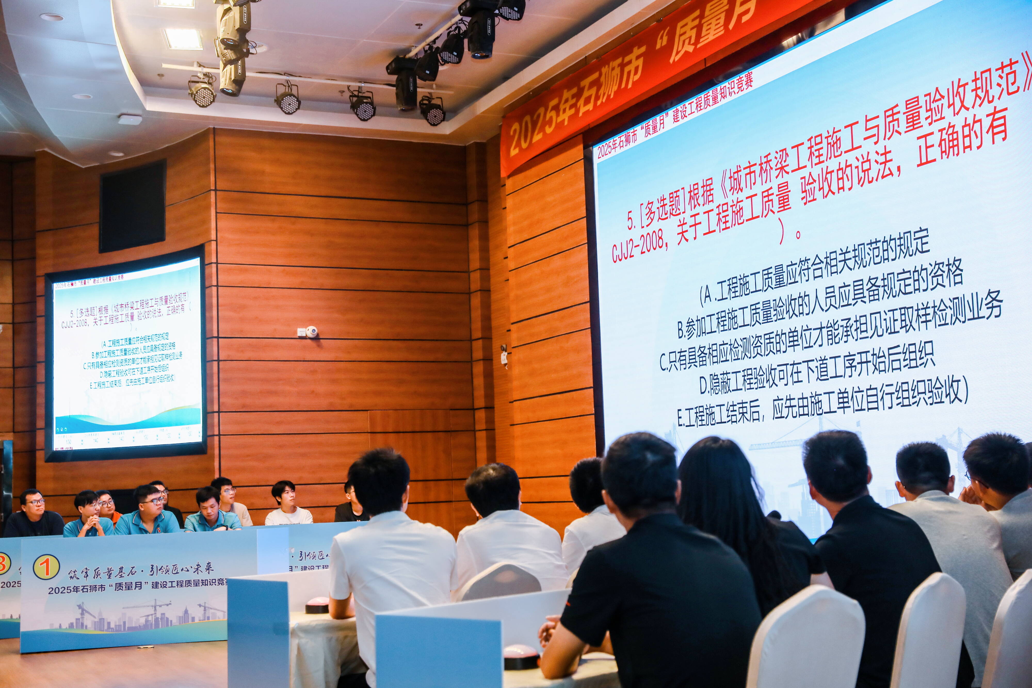 9月26日,由市住建局联合市总工会主办的2025年“质量月”建设工程质量知识竞赛,在闽南理工学院落下帷幕。经过初赛阶段的激烈角逐,来自全市建筑企业、在建工地施工单位的12支代表队脱颖而出、同台竞技,以专业比拼筑牢质量意识,以知识交锋夯实工程根基。