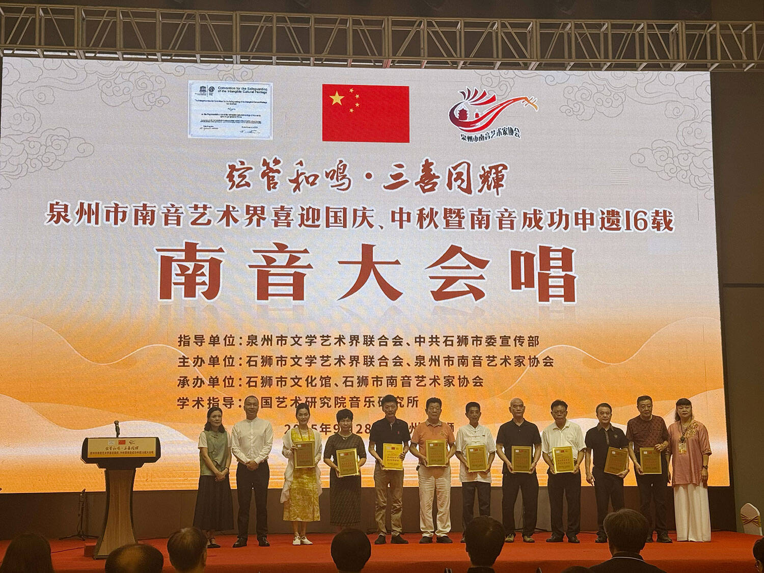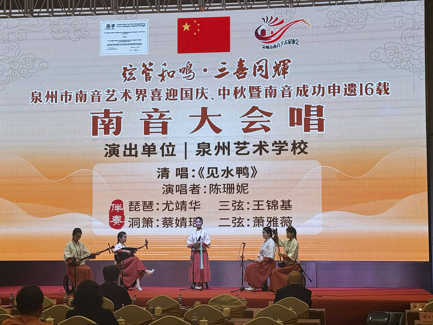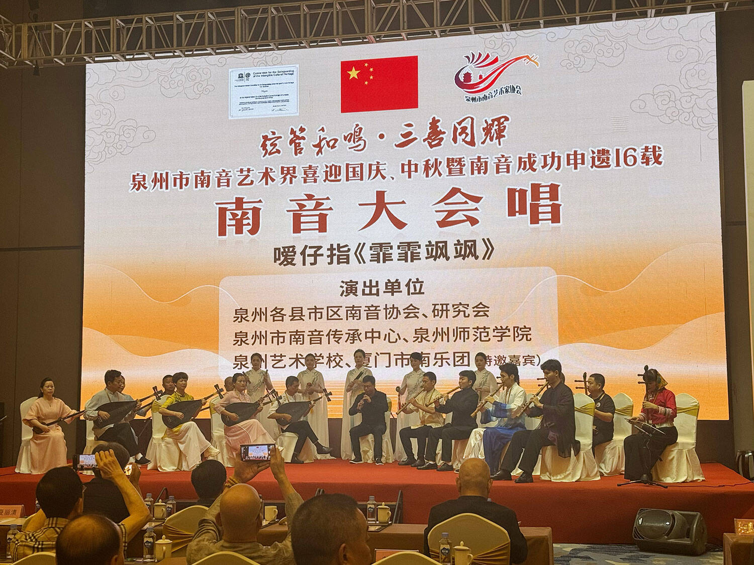9月28日下午,“弦管和鸣 · 三喜同辉”——泉州市南音艺术界喜迎国庆、中秋暨南音成功申遗16载大会唱活动在石狮举行。