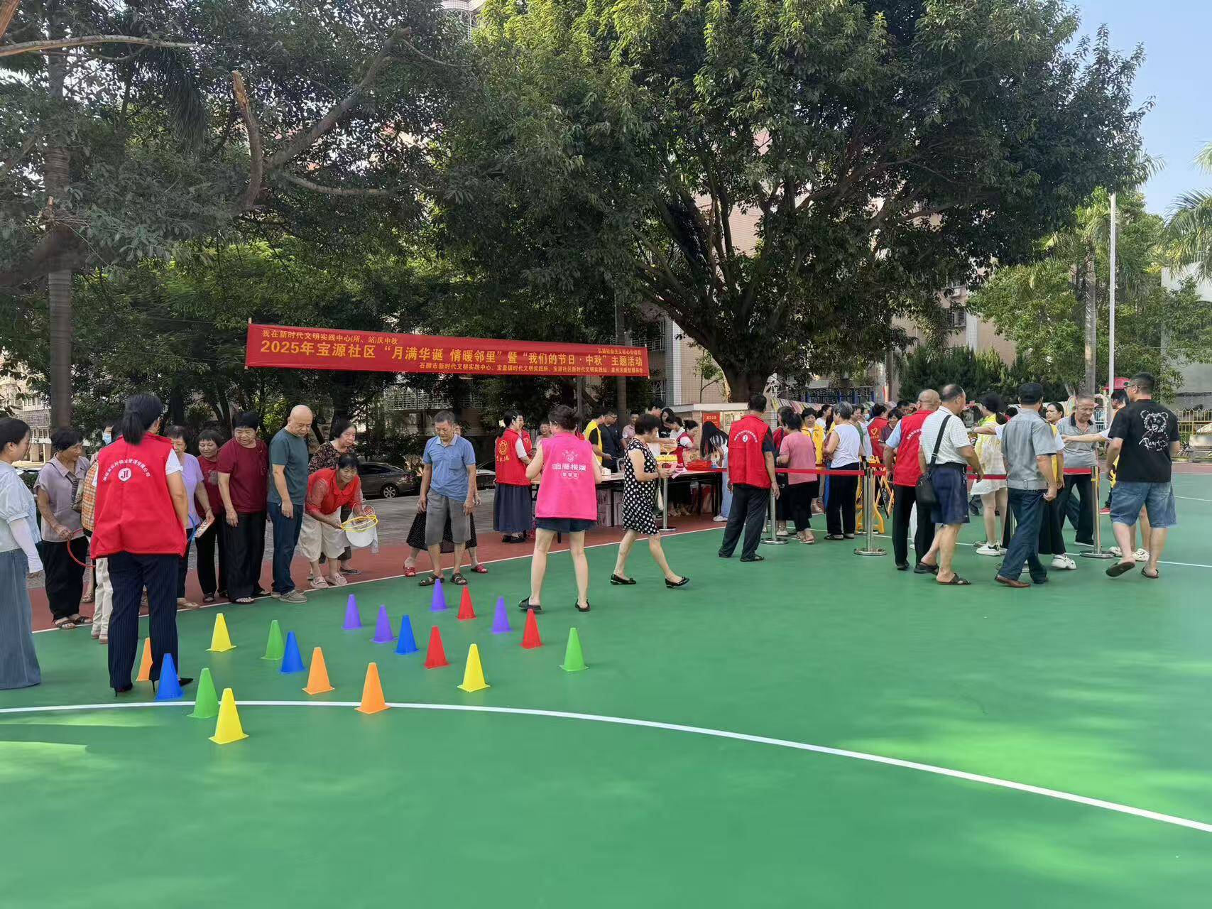 9月30日下午,宝源社区邻里篮球场欢笑声交织,“我们的节日·中秋”主题游园活动在此热闹举行,社区居民在游戏中感受节日欢乐!