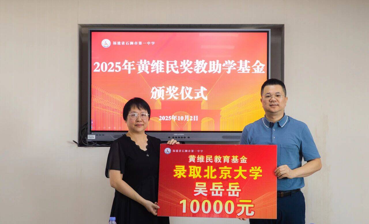 据悉,2022年石狮一中建校30周年时,石狮一中1996届校友黄国谦牢记父母教导,不忘回馈母校,设立了首期300万元“黄维民教育基金”,每年拿出30万元,用于奖励报考军事院校学生、进步显著学生及补助学校教师研修学生研学等;特别是设立国防教育基金,对母校考取重点军事大学、立志从事强军强国事业的学子予以奖励,以此鼓励更多学子从军报国。会上,为2025届考入北京大学的吴岳岳同学和16名2025届高考成绩进步显著学生颁发奖学金。(石狮市融媒体中心记者 许小雄 报道)