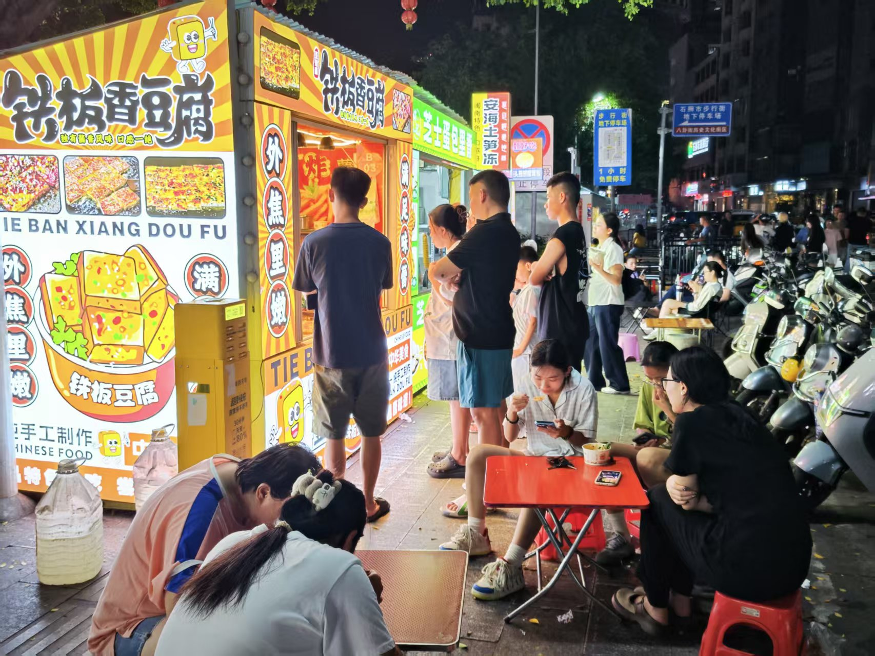 “平时工作忙,难得假期带孩子来逛夜市。” 市民林女士手里拿着棉花糖,身旁的孩子正盯着糖画摊位目不转睛,“这里能感受闽南风味,孩子开心,我们也能放松。” 不远处,几位年轻人围坐在小桌前边吃边聊天,“比起商场,夜市更有烟火气,过节就该这样热热闹闹的。”