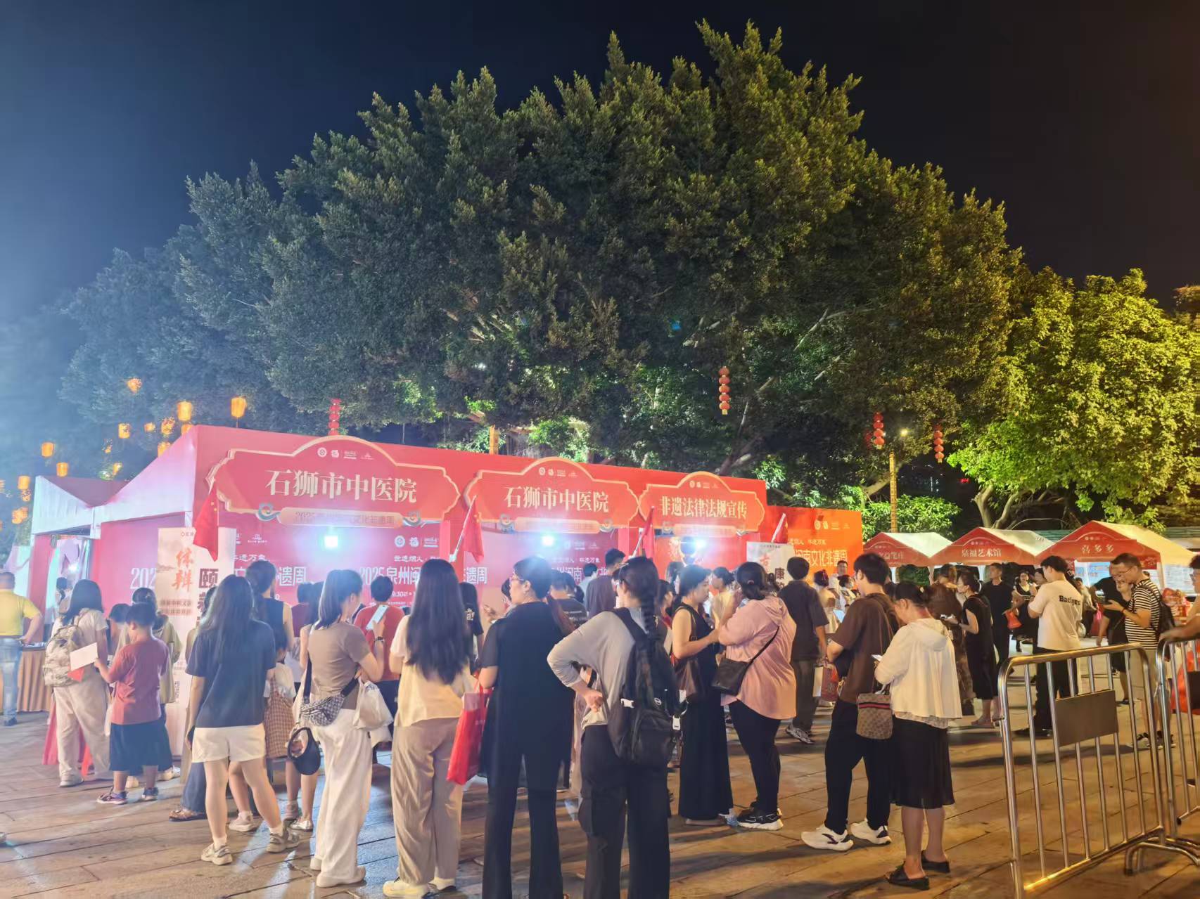 国庆期间,2025年泉州闽南文化非遗周系列活动在泉州府文庙广场持续开展。10月5日下午,石狮市中医院受邀参加展示中医文化。从下午四点至晚上九点,现场800多人到场体验各个中医项目。