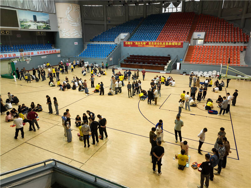 10月23日下午,市委组织部联合市卫健局,在市体育中心举办石狮市“海丝先锋”党员突击队应急救援培训,邀请泉州市急救指挥中心主任医师陈荣明以及志愿者教员到场,围绕心肺复苏操作、AED使用和海姆立克急救技能,为220多名“海丝先锋”党员突击队队员手把手进行指导培训,提升大家的应急救援技能和协同处置能力,增强在突发事件中的实战应对能力。
