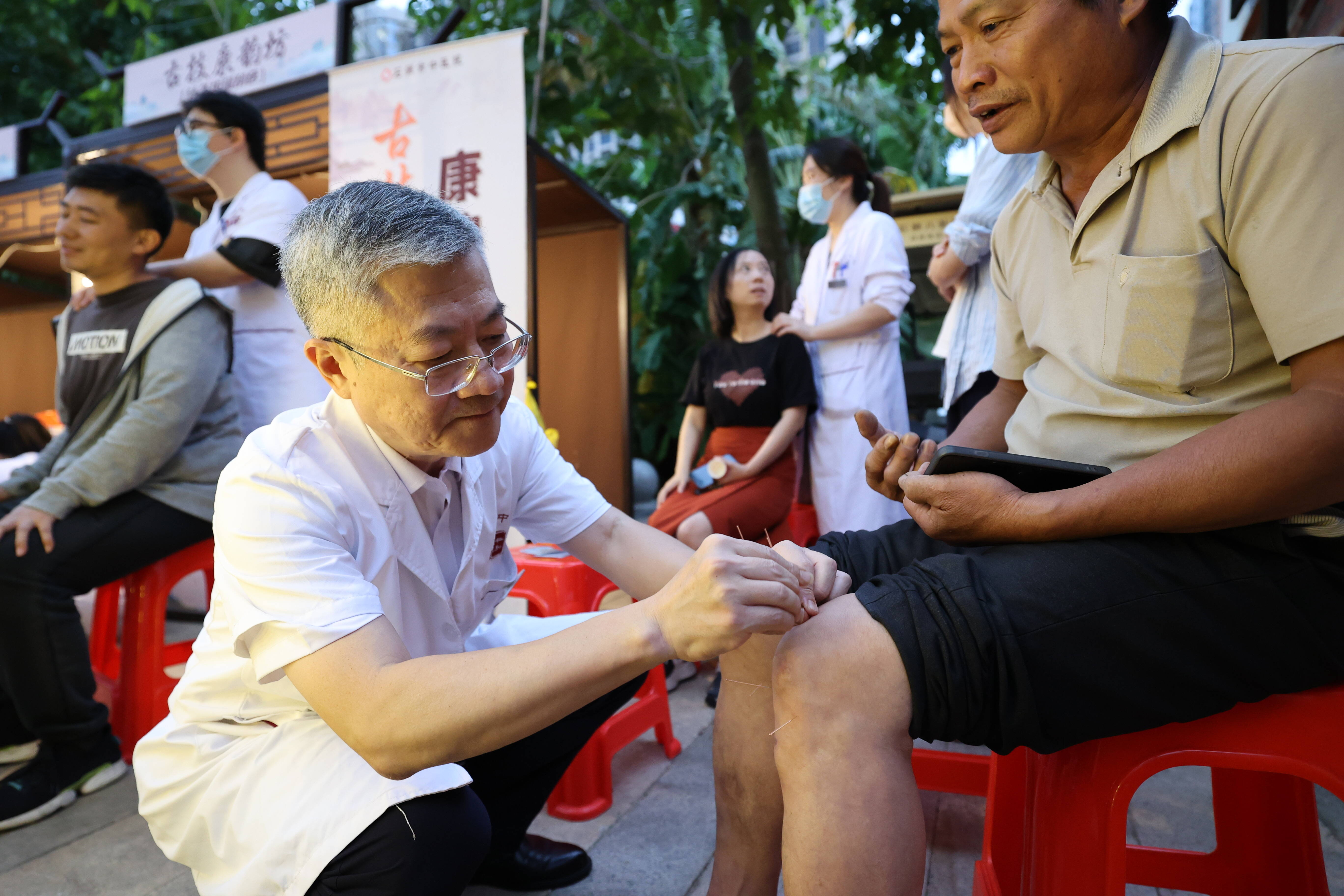 石狮市中医院治未病科、针灸科、中医内科、康复科等科室专家坐镇,为市民免费问诊、辨证开方,通过耳穴埋豆、针灸、拔罐、刮痧等中医适宜技术,解决颈肩腰腿痛、耳鸣、感冒咳嗽等常见问题。长期受偏头痛困扰的黄女士,在首次体验中医针灸与刮痧调理后直呼见效,“紧绷的神经放松了不少,整个人都松快多了!”