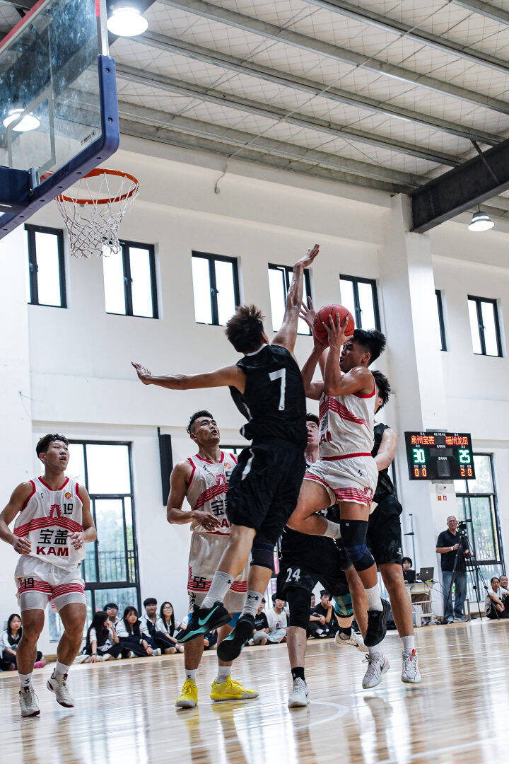 来自福州福清的龙田队是一支实力不俗的劲旅。比赛一开始,福州龙田队快速进入状态,在外线精准投射,第一节较量中处于领先优势。经验丰富的石狮宝盖队稳扎稳打,凭借队员的密切配合,在第二节扭转落后局面,至上半场结束时将比分改写成45∶36。下半场,石狮宝盖队不断扩大比分优势,一度领先18分。第四节,福州龙田队拼抢更加积极,多次成功抢断,并在外线屡中三分,把两位数的分差缩小至6分,让比赛顿生悬念。石狮宝盖队快速作出调整,阻挡对手的冲击,在内线接连得手。最终,石狮宝盖队以97∶88战胜福州龙田队,首战告捷。