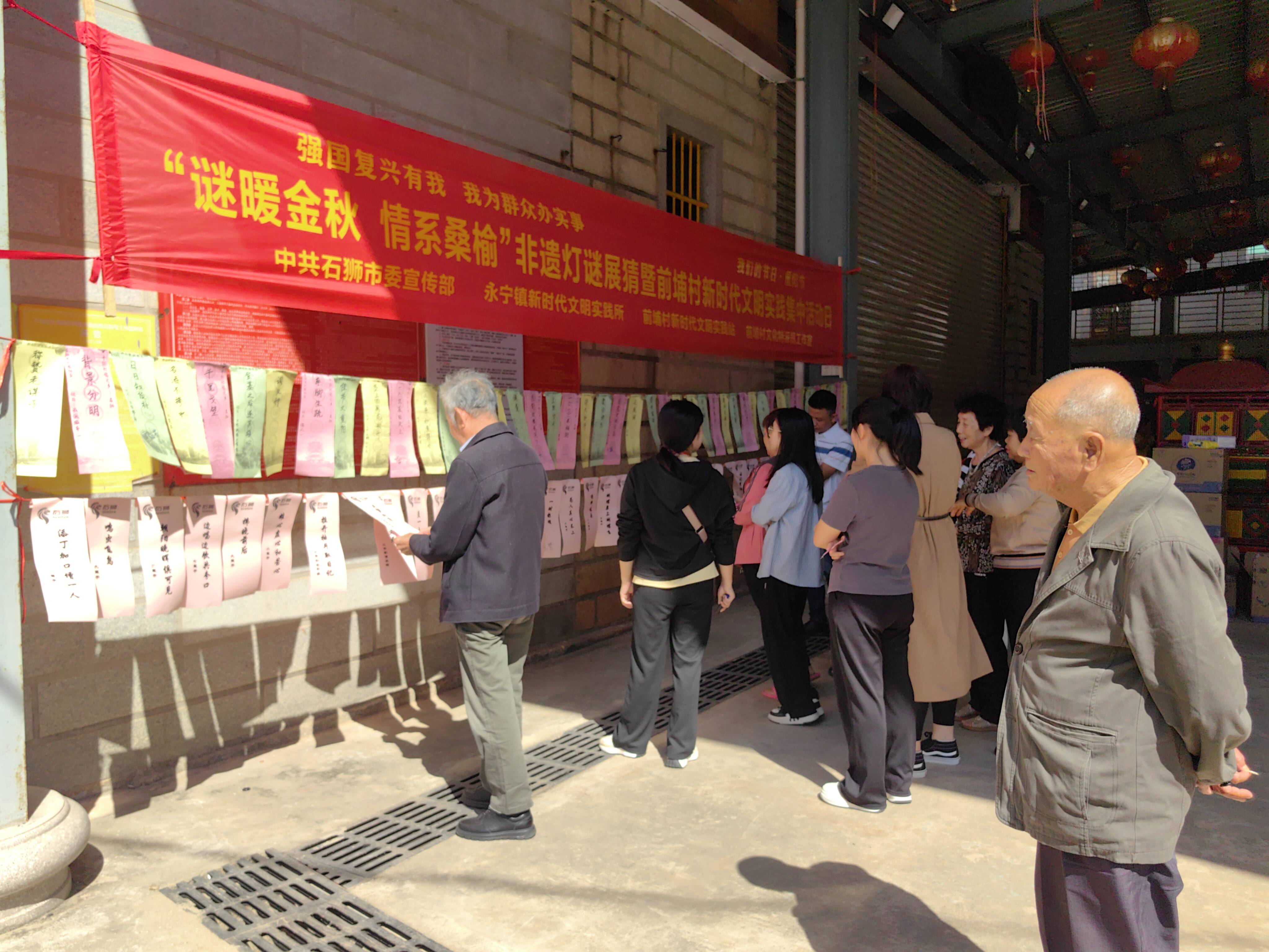 10月29日重阳节,由中共石狮市委宣传部、永宁镇新时代文明实践所、前埔村新时代文明实践站、前埔村文化特派员工作室联合主办的“谜暖金秋 情系桑榆”非遗灯谜展猜暨前埔村新时代文明实践集中活动日活动在前埔村举行。