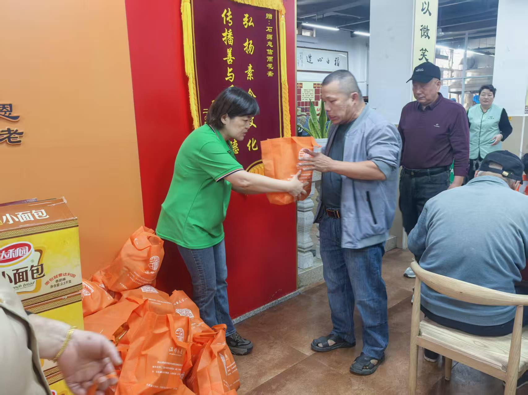 活动伊始,石狮市老年学学会为忠信雨花敬老家园授予“敬老爱老社会实践基地”牌匾。紧接着,温晴养护院的专业团队迅速行动,不仅捐赠了米面、面包等实用生活物资,更现场设点为老人们提供免费的血压测量服务,将健康关怀送到身边。