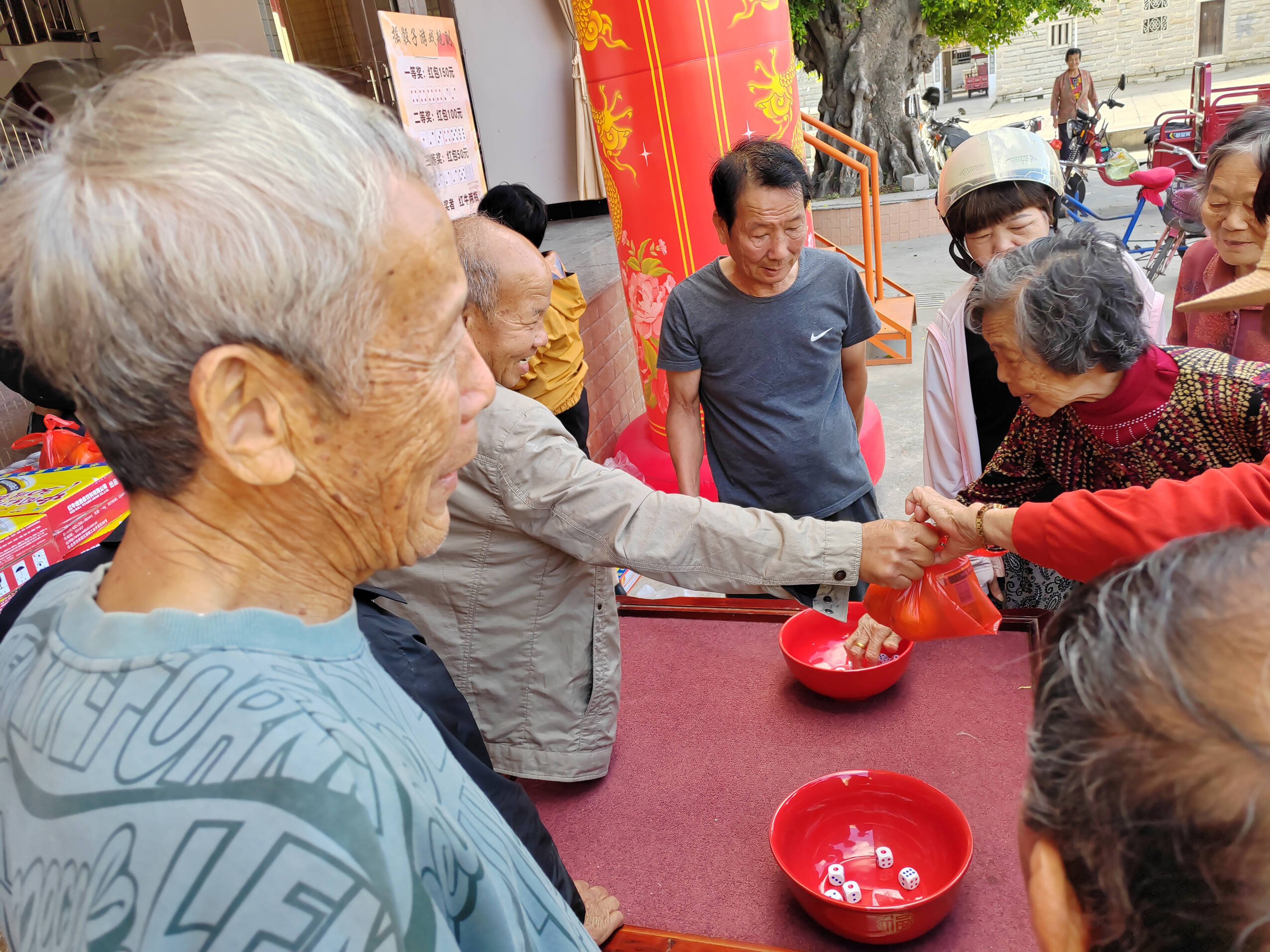 活动现场,其乐融融。石壁村党员志愿者、网格员在现场维持秩序,并协助工作人员为271名年满60周岁的老年人每人发放200元重阳节慰问金,累计发放54200元。值得一提的是,今年重阳节,石壁村辖区众多热心乡贤及爱心企业纷纷以实际行动为老年人送去关爱。活动中,还开展摇骰子等娱乐活动,老人们积极参与,现场节日气氛热烈。(石狮市融媒体中心记者 兰良增 报道)