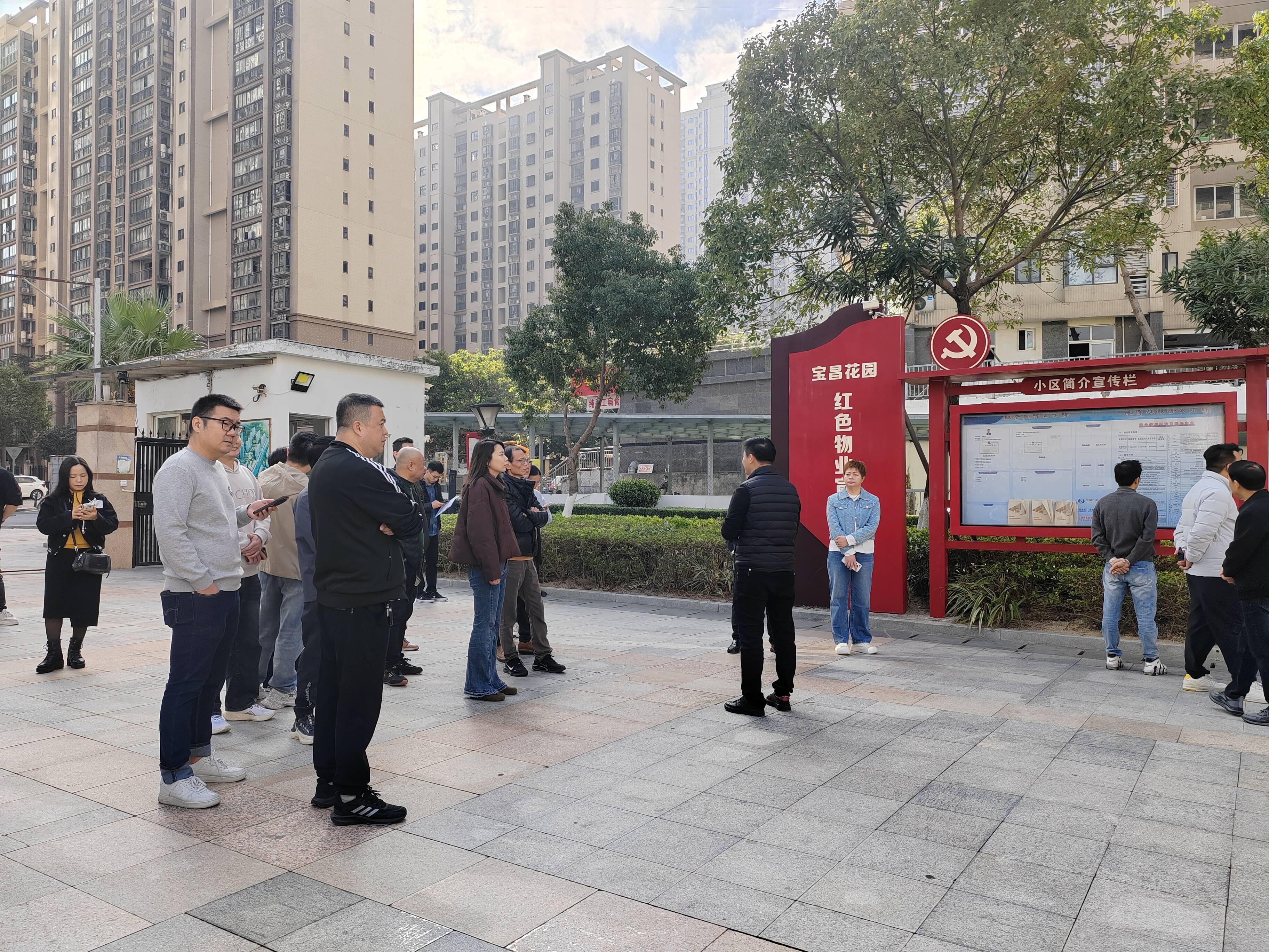 如何发挥党建引领作用,凝聚更加强大的小区治理力量?如何破解小区治理中存在的堵点、难点问题?如何更好地提升小区治理水平,增强业主的获得感、幸福感、安全感?12月24日上午,宝盖镇党委有关负责人带队,组织辖区内各小区党组织书记、业委会主任以及村级后备力量等50余人,到东城美居、宝昌花园、宝源花园三个典型示范小区开展实地观摩学习活动,让大家面对面交流互动,互相学习借鉴小区治理的好做法、好经验。