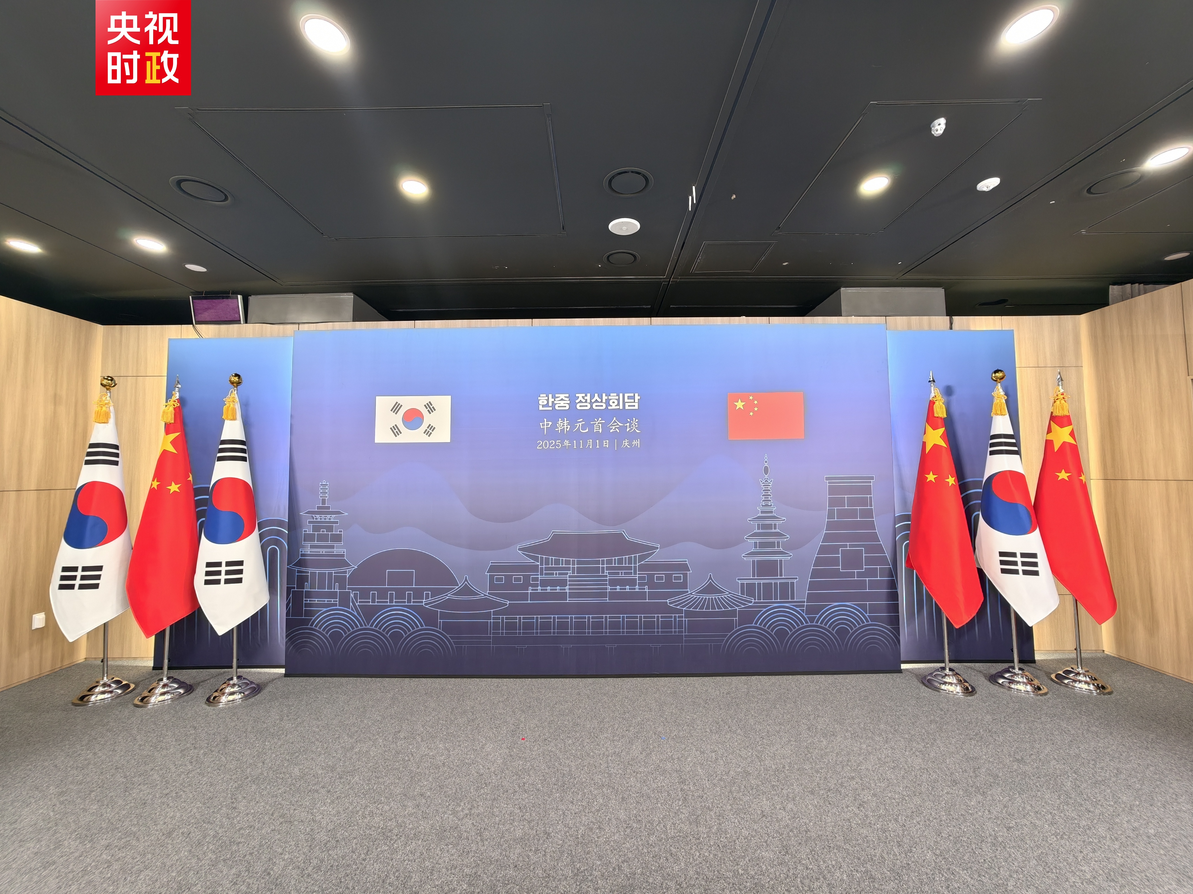 当地时间11月1日下午,国家主席习近平在庆州博物馆同韩国总统李在明举行会谈。