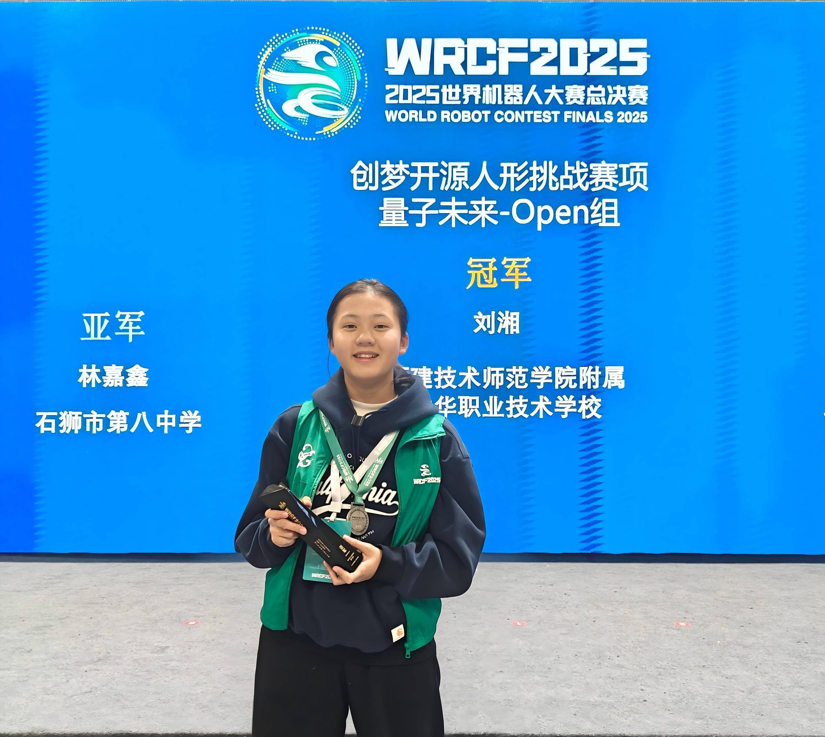 WRCF世界机器人大赛总决赛是教育部认可并列入全国性竞赛活动白名单的顶级赛事。本届大赛规模空前,吸引了全球超过25000名选手和指导教师参与。我市学子参与角逐的“量子未来”赛项,以“开源创新+真实场景应用”为核心,要求选手在开源平台上进行深度二次开发,综合优化机器人的关节驱动、AI感知与决策模块,以完成工厂搬运、复杂地形越障、精准抓取等高难度、综合性的实践任务,对参赛者的创新思维、编程能力、工程实践及临场应变能力提出了极高要求。林嘉鑫同学在比赛中沉着应对、稳定发挥,其表现出的扎实专业技能和卓越创新能力,赢得了评委与同行的高度认可,最终斩获亚军,在国际舞台上精彩展示了石狮青少年的科创风采。
